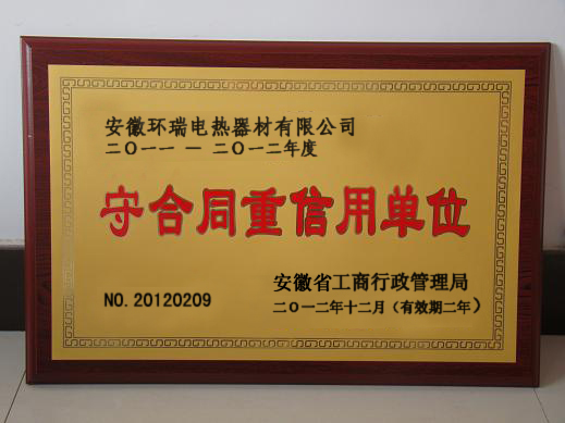 誠信是企業(yè)可持續(xù)發(fā)展的基石。十多年來,安徽環(huán)瑞電熱器材有限公司始終秉承“以人為本,以顧客為中心”的核心價(jià)值觀,恪守誠信經(jīng)營的理念,嚴(yán)格執(zhí)行《合同法》、《公司法》等法律法規(guī),不斷強(qiáng)化合同管理,完善合同管理制度,從根本上保證合同管理和履行的規(guī)范性。同時(shí),大力開展創(chuàng)造“守合同重信用”企業(yè)活動(dòng),營造“守合同重信用”的良好氛圍,提高全體職工“守合同重信用”的自覺性和法制觀念,使企業(yè)合同管理不斷走向制度化、規(guī)范化、標(biāo)準(zhǔn)化。2011-2012年公司合同履行率100%。無任何違法、違約、違規(guī)及合同糾紛等不良行為,各合作單位對安徽環(huán)瑞的合同履行情況也都給予了高度評價(jià)。