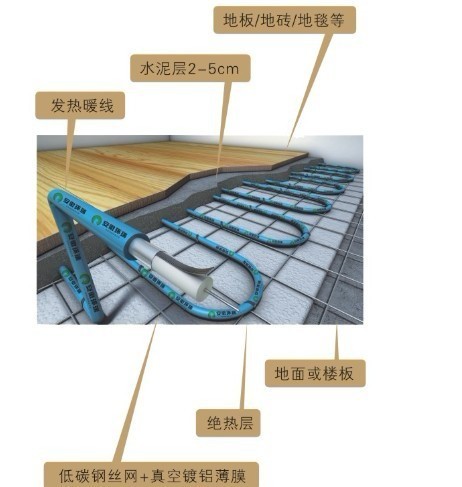 地面供暖 將加熱電纜鋪設于水泥地下,實現以下往上的供熱。具體鋪設方式為;
