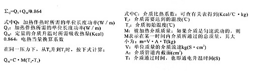 在工程設計中有時會碰到這樣的情況,要求產品既能伴熱保溫。又能將介質開始是靜止的或流速較慢,流量較少,且所需升溫的度數(shù)不高時,有時用電伴熱產品也可以滿足設計要求。此時,該電伴熱產品的設計功率所產生的熱量按下式計算: