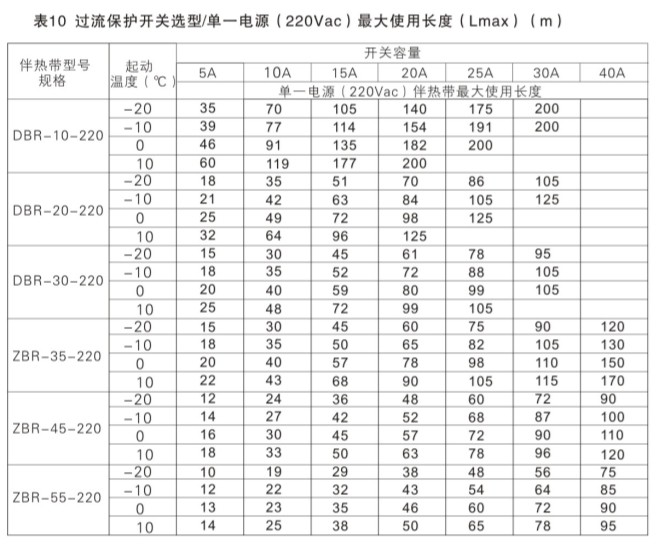 自限溫電熱帶因?yàn)槠涫褂瞄L(zhǎng)度不一,不同溫度等級(jí),導(dǎo)體截面不同,導(dǎo)致啟動(dòng)電流不同。通常自限式電伴熱帶的最大使用長(zhǎng)度為100米。超過(guò)此長(zhǎng)度,需另外選擇電源點(diǎn)。單一電源的長(zhǎng)度需要根據(jù)啟動(dòng)電流數(shù)據(jù)選用保險(xiǎn)絲及開(kāi)關(guān)容量。