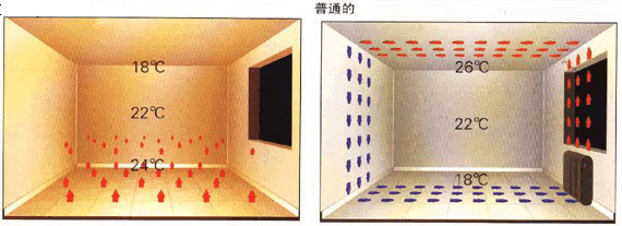 ◆熱量從下向上輻射,自下而上形成梯度溫差,人體感覺十分舒適,非常符合“頭要涼腳要熱”的中醫(yī)人體健康學(xué)根本。