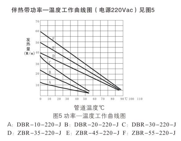 確定和選擇電熱帶的輸出功率,不是以標(biāo)稱(chēng)功率為依據(jù),而是一系統(tǒng)維持溫度時(shí)電熱帶必須輸出的功率為依據(jù)。所選的電熱帶的功率,即使在最?lèi)毫拥臈l件下(如最低氣溫,最大風(fēng)度),應(yīng)仍能補(bǔ)償設(shè)備和管道的熱損失,使維持溫度不致降低。根據(jù)計(jì)算的得出的管道每米熱損失值在功率-溫度曲線(xiàn)上查出管道維持溫度時(shí)電熱帶的功率,以確定合適的電熱帶規(guī)格。